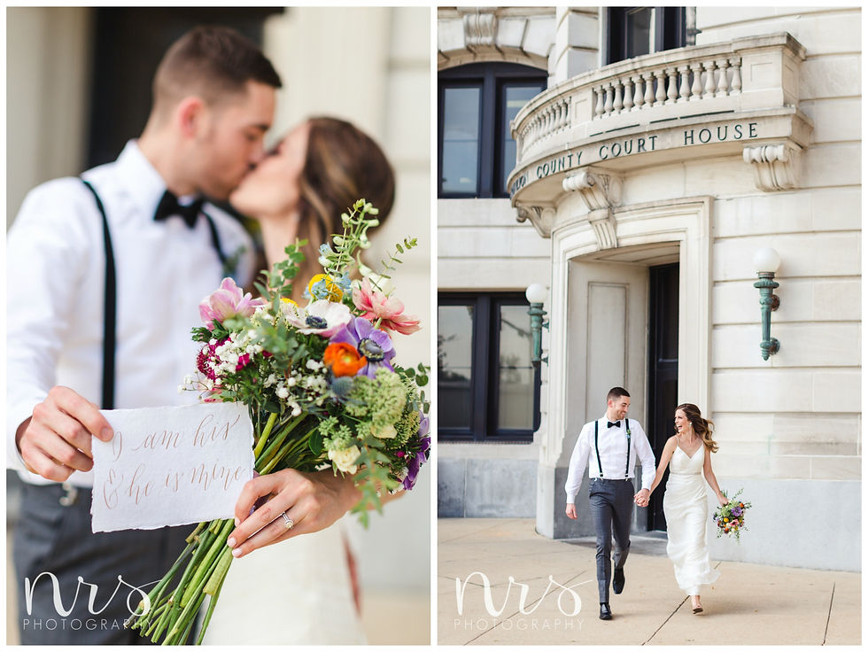 As a bride it’s all about the dress, everything else kind of follow’s suit, and the bridal gown was the perfect blend of laid back elegance for a courthouse wedding, so I chose a small-scale garden-style bouquet. Kind of boho, kind of garden party.
