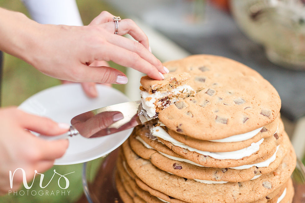 "I was thrilled when Natalie invite me to participate in this styled shoot. I've know both Natalie and Rebecca for quite some time, and to be involved with something that they're a part of is such a privilege. Since GeeManetti's will be opening this coming Spring, the shoot was a wonderful opportunity to offer a sneak peak of a few menu items that we will have. Natalie said that their theme for the "reception" would be an intimate back yard BBQ. So I chose our Teriyaki Chicken Kabobs, Savory Mushroom Wild Rice, and a Strawberry Spinach Salad. I picked these items because they are bright, colorful, delicious (we eat them at home pretty often!), and matched the theme. I also made a chocolate chip cookie wedding cake (at Rebecca's request) which I had not ever made before, but it turned out really well!
