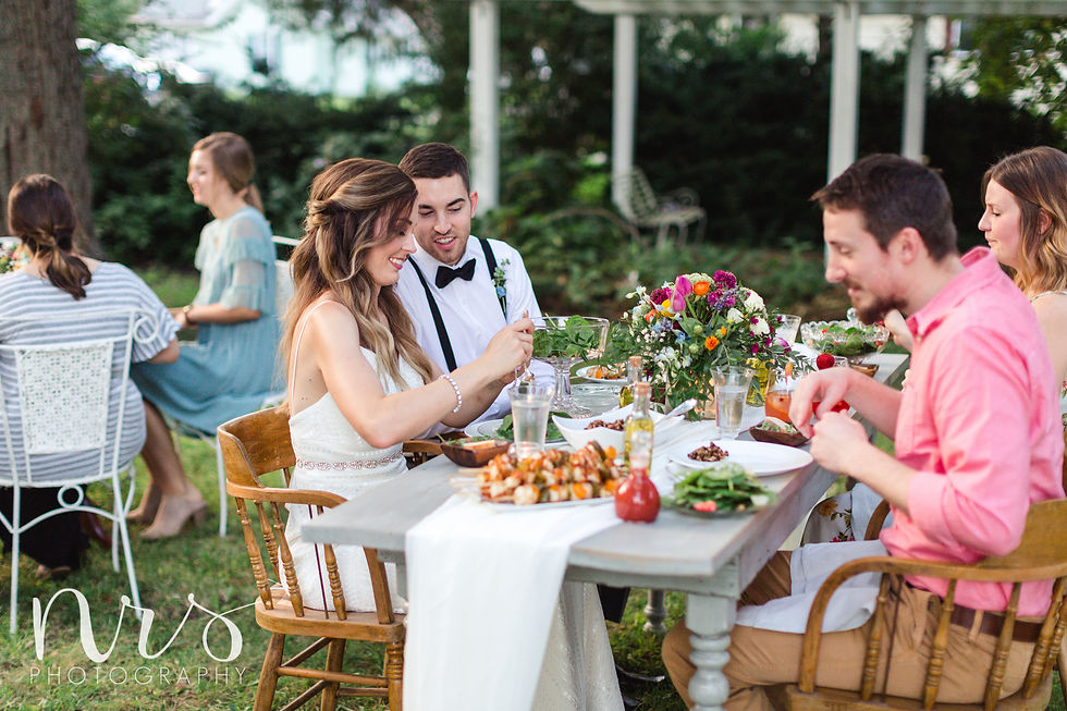 "It's like one two three, just as easy as can be. Just the way you look at me, you make me smile. Ain't no need to complicate it, we both know that's overrated. We've been there. It's safe to say it ain't our style. It's just that S I M P L E. Simple as can be." -Florida Georgia Line, Simple You have to go look up this song while you look at these photos! The words are perfect for the inspiration behind doing this shoot. (And I don't even listen to country!) I especially love the beginning line of the second verse. No joke, check it out! Instead of trying to write about all the amazing things provided by our team of vendors myself, I thought it would be better to hear from them directly! Look for their notes to read scattered throughout the post while you get inspired by these images! - Collaborator Information - Photographer: NRS Photography Florals: The Olive Branch Flower Art & Events Hair/Makeup Artists: Studio 31 Salon & Spa Dinner/Desserts: GeeManetti’s Model Bride/Groom: Alex & Rebecca Kentner Bridal/Men’s Wear: Elite Bridal Bridal Accessory Jewelry: It’s So Me Boutique Flatware/Serving-ware/Napkins: Cynthia Bookwalter, Jacquie Potter, Murna Moss Tables/Chairs/Stemware/Serving Bowls: Two’s Company Calligraphy: Laura Hines Designs